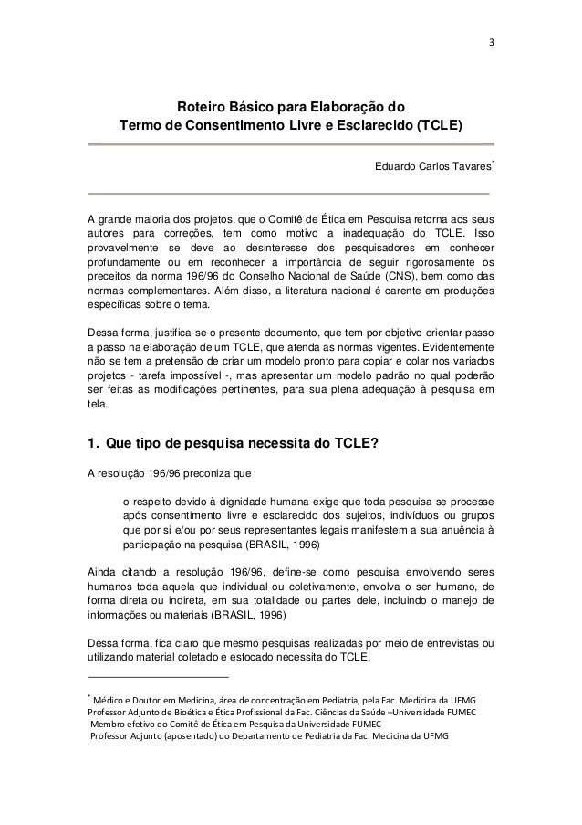 Termo de Consentimento. Nº ATENÇÃO: SENHORES PESQUISADORES, Ao elaborar o. TCLE de seus responsáveis legais. Ele contém explicações sobre o estudo que você está sendo convidado a. Estes pesquisadores foram acessados pelo sistema de “bola de neve”.